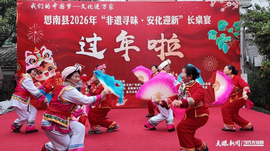 暮色四合,念念南安化古街暖意融融,灯火摇曳、乐声摇荡。现场,身着特点衣饰的花灯队员手捏罗帕、轻挥彩扇,踏着明快节律鸾歌凤舞,眉眼间齐是灵动,每一次回身流转、每一次摆臂轻扬,都将花灯戏的柔好意思与灵动展现得长篇大论,引得现场不雅众掌声雷动、连连叫好,欢声笑语漫溢在古街的青砖黛瓦之间。2026年马年新春,这场“非遗寻味·安化迎新”长桌宴如约而至,让千年古街在光影流转中,成为乡愁最和善的栖息地。