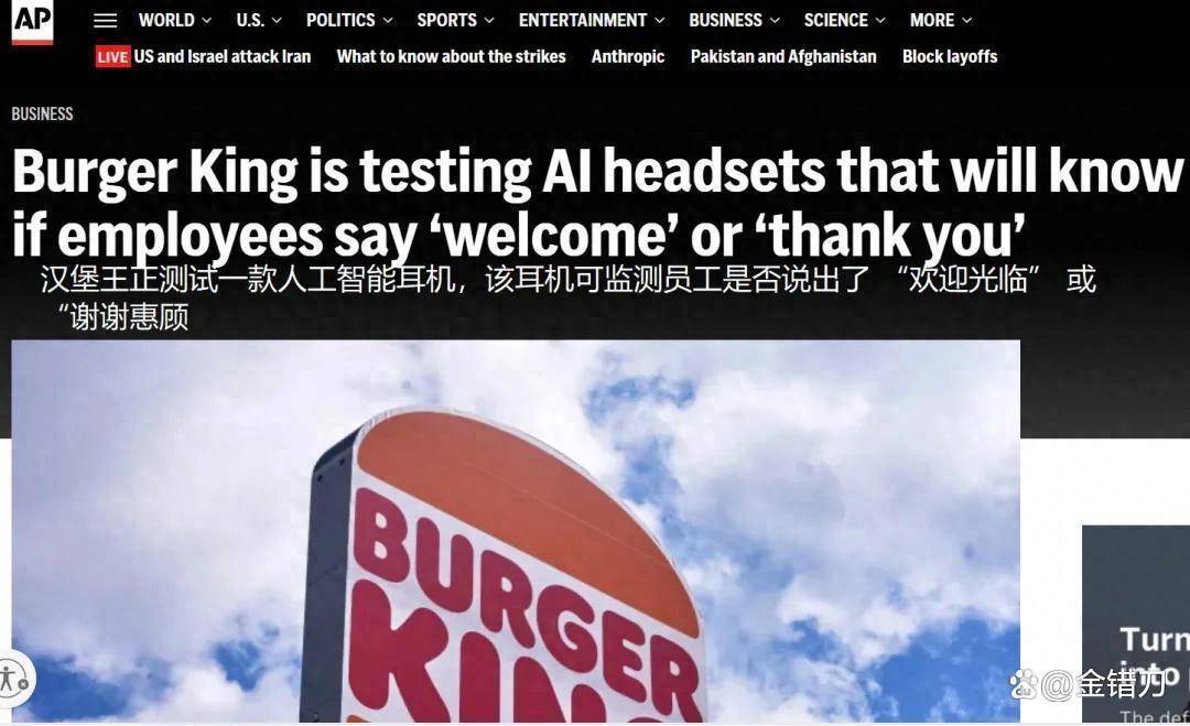 就在这两天,汉堡王在好意思国500家门店试点部署AI耳机系统,监测职工与顾主的对话。